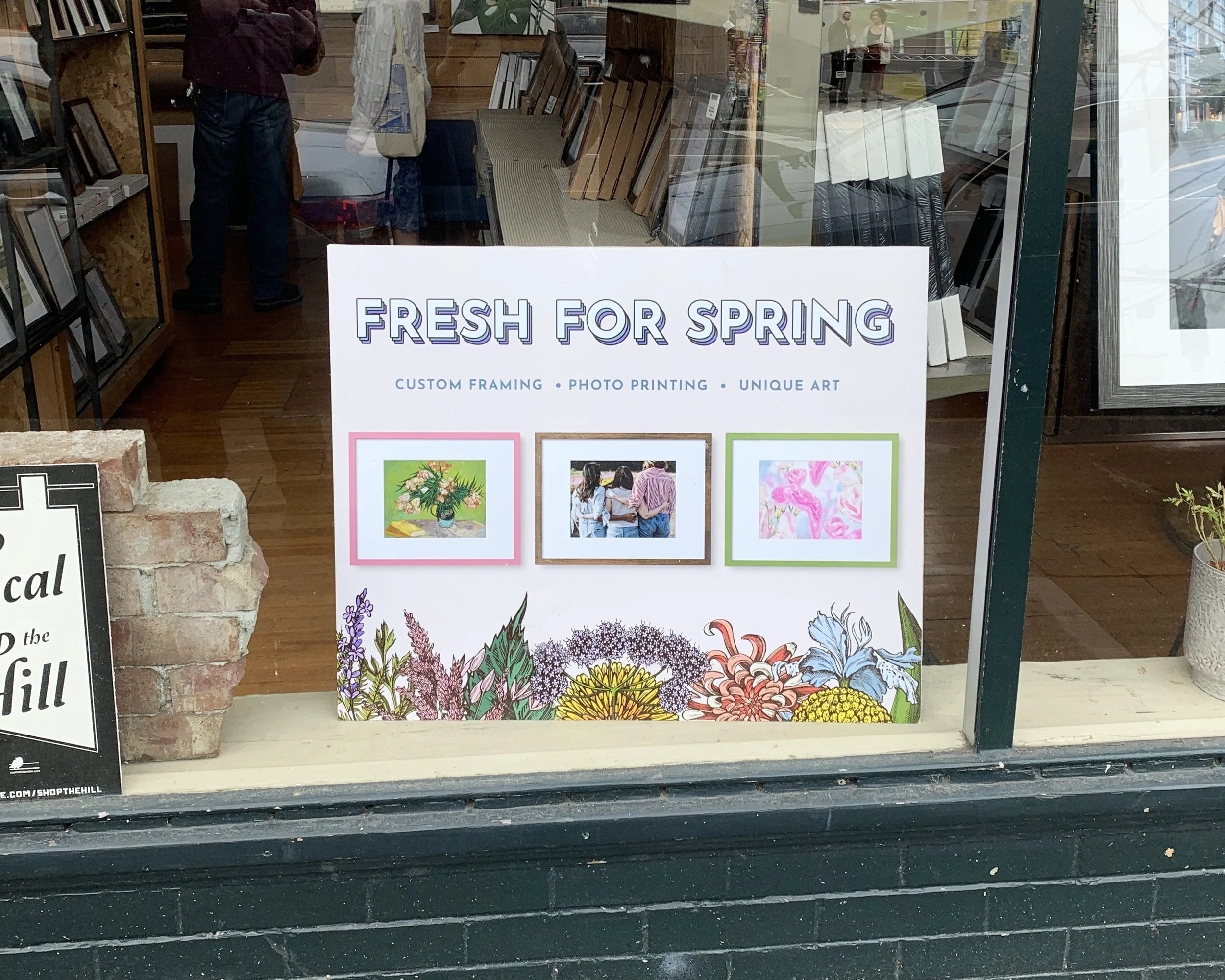 Physical in-store signage created for 19 frame shop retail locations based on seasons and holidays.